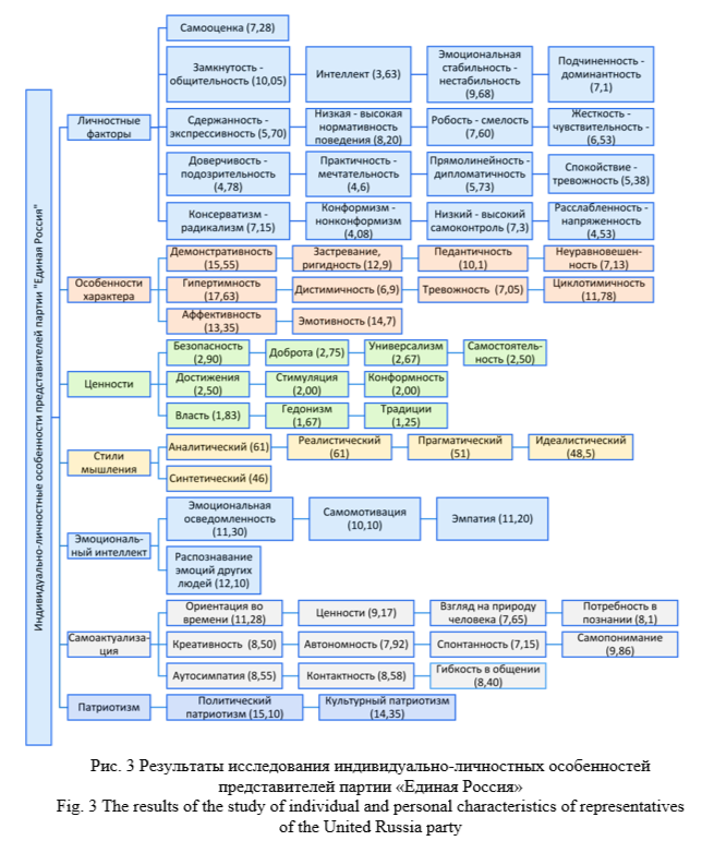 Научные результаты и дискуссия (Research Results and Discussion). Авторами был проведен анализ индивидуально-личностных особенностей представителей партии «Единая Россия», результаты представлены на рис. 3.
